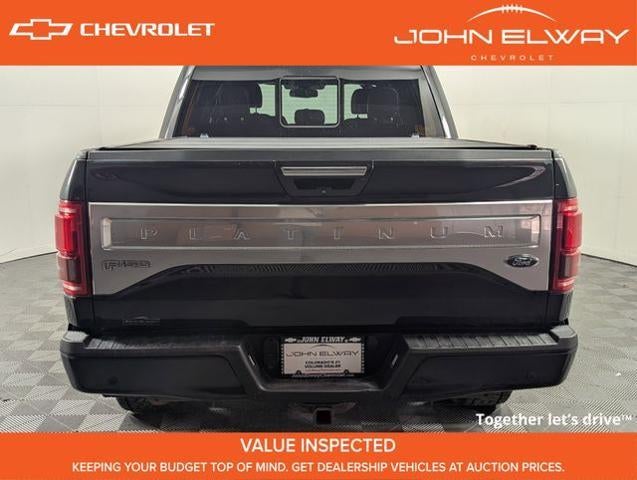 Clean CARFAX. Five Star Detail, 4WD, 4x4 FX4 Off-Road Decal, Adaptive Cruise Control & Collision Warning, Auxiliary Transmission Oil Cooler, Class IV Trailer Hitch Receiver, Electronic Locking w/3.31 Axle Ratio, Equipment Group 701A Luxury, Front & Rear Off-Road Tuned Shock Absorbers, FX4 Off-Road Package, Hill Descent Control, Lane-Keeping System, Navigation System, Tailgate Step w/Tailgate Lift Assist, Technology Package, Trailer Tow Package, Upgraded Front Stabilizer Bar, Voice-Activated Navigation. 2015 Ford F-150 Platinum VALUE INSPECTED VEHICLE: This vehicle is what we call Value Inspected. This is meant for our less expensive vehicles that may have some items that the dealer has discovered and elected not repair in order to keep the vehicle more affordable. These vehicles still undergo a full 120-point inspection as all others do, and any items deemed to be safety related are always repaired. This vehicle is sold to AS-IS. We expressly disclaim all warranties. I understand a limited-service contract MAY be provided with an option to upgrade the coverage if one is available. Please be aware any pre-disclosed items will however not be covered by the service contract. The dealer may offer repairs to any pre-existing conditions at time of sale, based on dealers internal pricing. These offers will be in effect for 90 days.